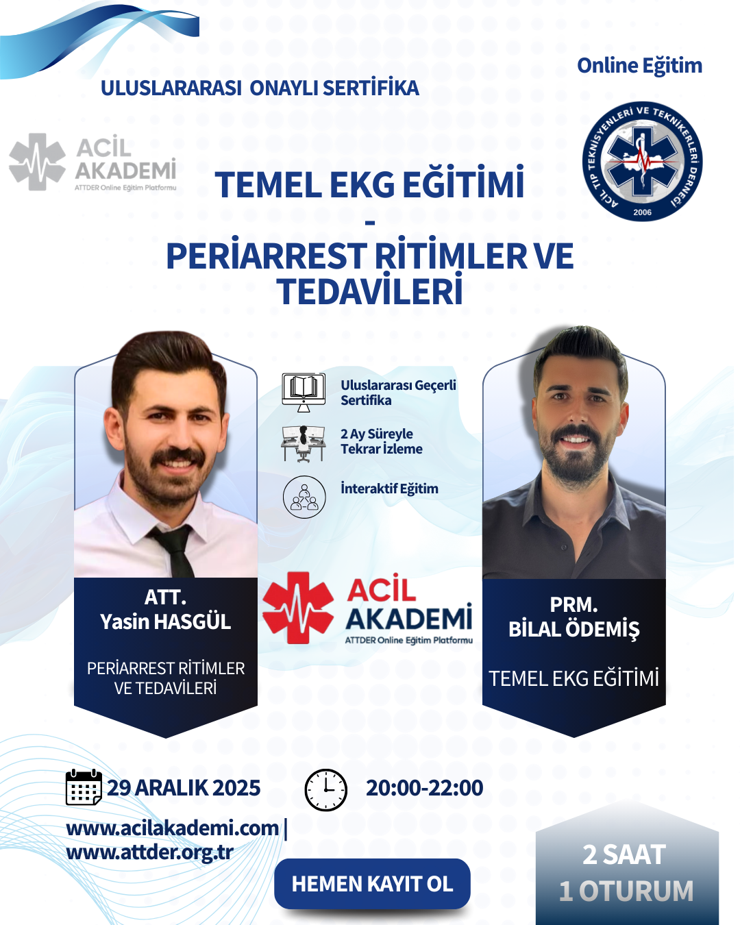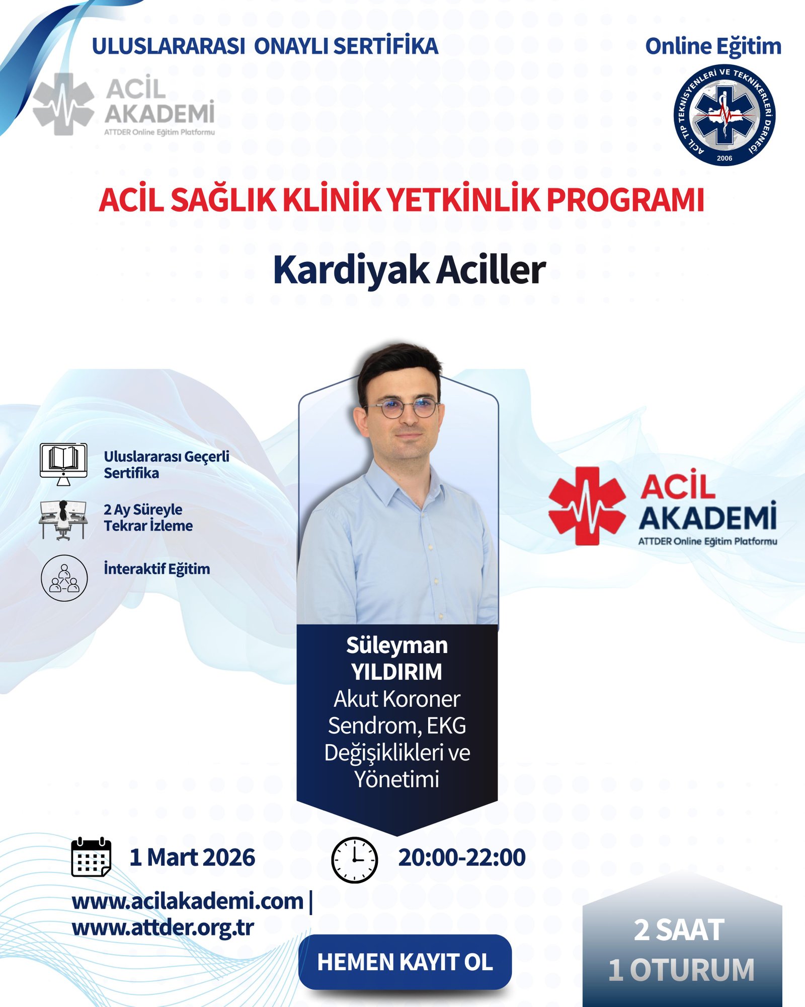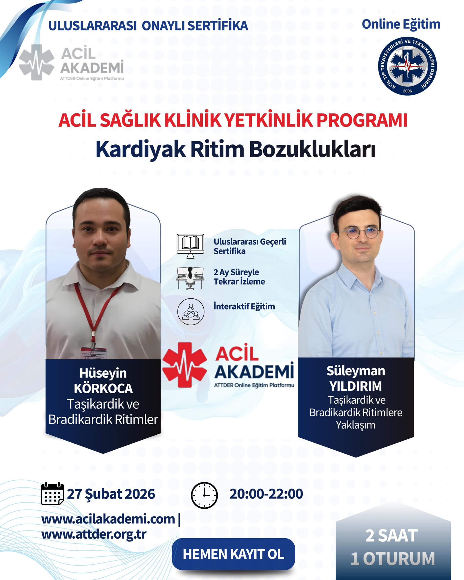 Acil sağlık alanında görev yapan hekimler, paramedikler, ATT’ler ve diğer sağlık profesyonelleri için hazırlanan Acil Sağlık Klinik Yetkinlik Programı, Şubat–Mart 2026 tarihleri arasında online olarak gerçekleştirilecektir.